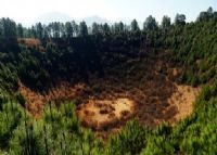 小空山位于騰沖縣城西十余公里的馬站鄉(xiāng)境內(nèi),大空山的右側(cè)。因騰沖地處印度板塊和歐亞板塊急劇聚斂的結(jié)合線上,地下斷層非常發(fā)育,巖漿活動(dòng)也十分劇烈而形成。小空山高僅五十來(lái)米,但火山口卻大得出奇,直徑一百五十米有余。渾圓的錐體空空洞洞,看似無(wú)物,卻盛滿了大自然的無(wú)窮奧秘。