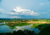 青龍山坐落于普者黑湖畔中部,主峰海拔1555.8米,與南邊的鳳凰山相對,形成了“龍鳳呈祥”的格局,山上有火把石洞、月亮洞、張咀石洞等8個(gè)溶洞,有溶洞洞口與湖面相連,現(xiàn)探明火把石洞與月亮洞相通。張咀石洞橫穿大龍山,湖水貫通,可行小船。北部湖面有三座峻秀的島狀孤峰,其中的火神山(珍珠島)上綠樹青枝,落影水下,為峰之轎子。站在青龍山上,可俯瞰普者黑全貌,這里也是觀日出和日落的最佳位置。