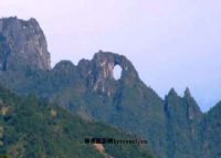 石月亮距離福貢縣城32公里,在我們沒有目睹它的芳容之前,我先給大家介紹石月亮。石月亮位于高黎貢山山脈中北部福貢縣石月亮鄉境內的怒江西岸海拔3200米——3500米之間的山顛中,是一個天然大理巖溶蝕而成的深洞穿透整個山體而形成的。深洞呈橢圓型,東西長32.70米,上下高約60米,寬30米,深12米,洞前有一棵約20米高的干枯云杉樹。從遠處眺望恰似一輪明月高高懸掛于山林峰海之中,與天空連接為一體,群峰簇擁,形成一個集宏大、奇異神秘、秀麗為一體的怒江大峽谷地質奇觀,傈僳語叫“亞哈吧”,是傈僳族的發祥地。在傈僳族和怒族的民間故事中,有許多有關石月亮的神秘的傳說,給它蒙上一層神秘的面紗,其中最著名的是:在遠古年代,洪水暴發,江河泛濫,人類遭殃,地球上只剩兄妹倆,哥哥叫啟酒,妹妹叫來酒,天神指點他倆結成夫妻以繁衍人類。一天,在怒江邊上,龍王公主與啟酒邂逅相遇并深深地愛上了他,以后經常與之幽會,龍王得知后不僅竭力阻止他們相愛,還企圖施用法術讓河水淹沒群山,淹死啟酒。天神也察覺龍王的反意,事先為他們準備好木船和神弓寶箭,好讓兄妹兩和龍女在龍王作法漲水時便于逃生,后來龍王濫施法力,攪得滄海橫流,洪水滔天,轉眼就淹沒了峽谷、漫過了群山。啟酒兄妹和龍女三人同坐在天神為他們準備好的木船上,七天七夜漂游在波峰浪尖里,然而雷電不斷,風雨不止,滄海成災,在這關鍵時刻,啟酒用天神賜于的神弓寶箭,對著天空射擊一箭,風雨雷電立即停止,再射第二箭,驅散了滿天的云霧,升出了火紅的太陽,第三支神箭對著眼前的一座高聳的石峰射去,石峰射穿一個大洞,使洪水從洞中流出去,但他們三人卻被圍困在那兩邊都是懸崖峭壁,萬丈深淵的石月亮洞中,來去無路,進退兩難,在這無計可施的時候,啟酒之妹來酒毅然從洞中跳下山崖,頓時那萬丈深淵的山段之間出現了一座美麗的彩虹橋,從而使啟酒和龍女得以踏橋而過,并最終促成了他們的婚事,使人類繁衍生息……