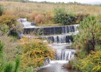 神龍三疊水是玉水寨一大景觀。若大的一股泉水順著山坡而下,折成三大疊。